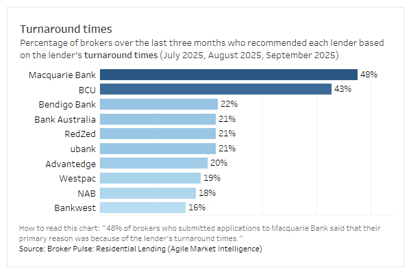 - 48% of brokers who submitted applications to Macquarie Bank did so due to their turnaround time.
