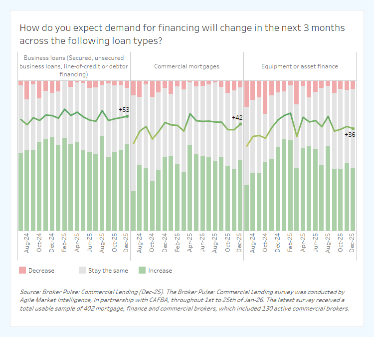 The Broker Pulse: Commercial Lending report is a community-driven benchmarking initiative capturing the experiences of commercial and asset finance brokers across Australia. The latest edition captures experiences for applications submitted throughout December 2025, with the survey conducted between 1st and 25th of January 2026, with a total usable sample of 402 mortgage, finance and commercial brokers, including 130 active commercial brokers. The report includes data across asset finance, business loans, and commercial mortgages, and is conducted by Agile Market Intelligence in partnership with the Commercial & Asset Finance Brokers Association (CAFBA).