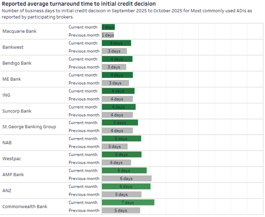 Macquarie leads with the shortest turnaround time, as overall processing time increases in October 2025